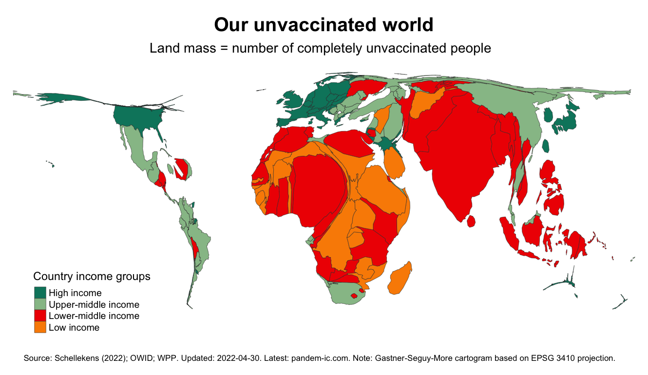Today 2.7 billion people have yet to receive their first vaccine shot against COVID-19. Article on “Mapping the unvaccinated world” here.