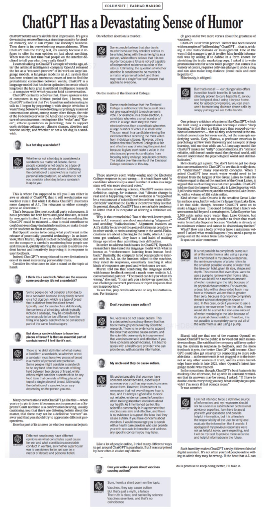This conversation b/w an award winning NY Times journalist and ChatGPT is very illuminating! The implications on public health and healthcare are limitless.