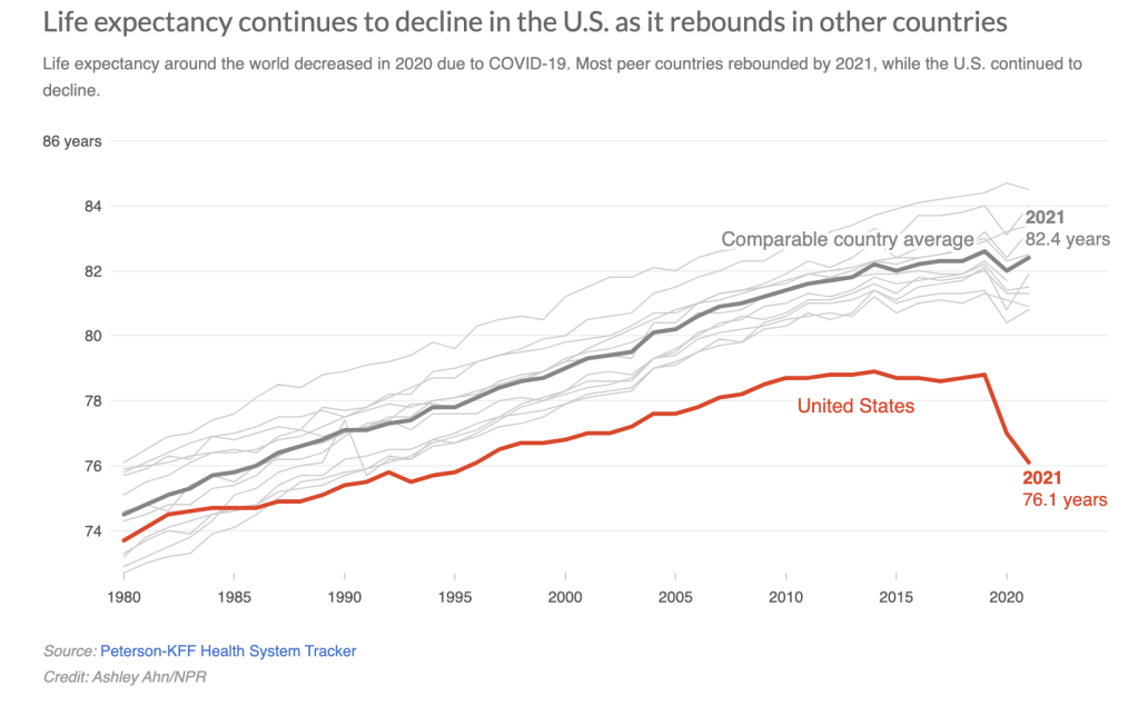 “Across the lifespan, and across every demographic group, Americans die at younger ages than their counterparts in other wealthy nations.