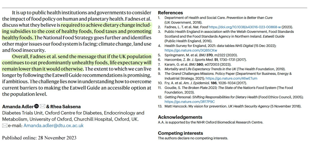 A great summary of findings from Nature’s land mark study on impact of nutrition habits on health.